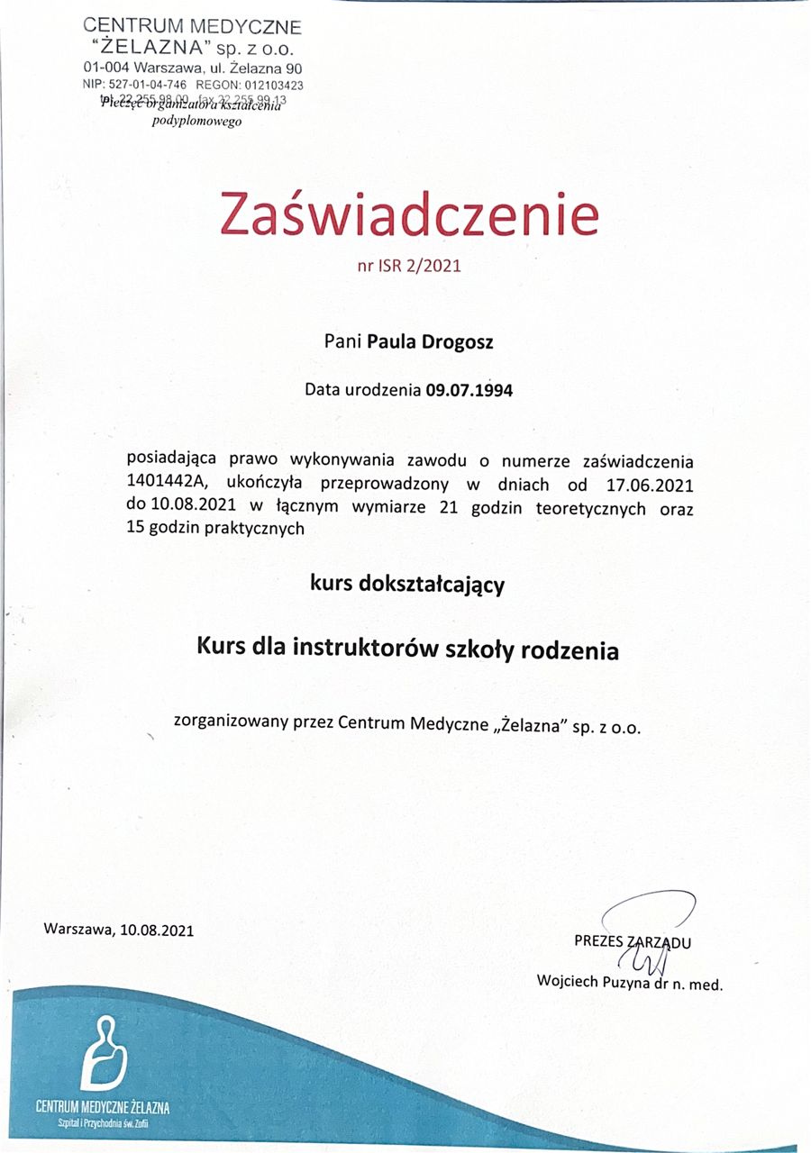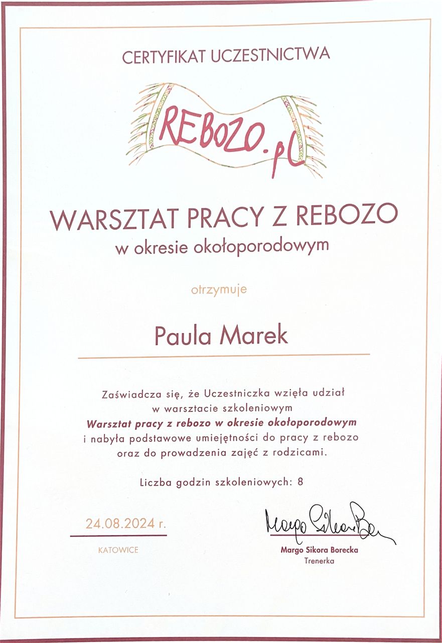 Paula Marek to doświadczona położna, trener personalny i edukatorka okołoporodowa, która łączy praktykę kliniczną z indywidualnym wsparciem kobiet w ciąży. Dzięki licznym certyfikatom, szkoleniom i pracy warsztatowej, oferuje profesjonalną, empatyczną opiekę, budując zaufanie i pewność siebie każdej przyszłej mamy.